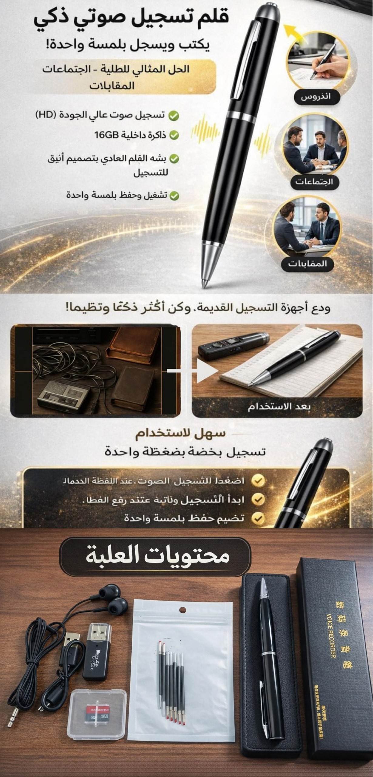 مسجل صوت مخفي مع ذاكرة 16 جيجا + يكتب، يسجل، ويحفظ كلشي!